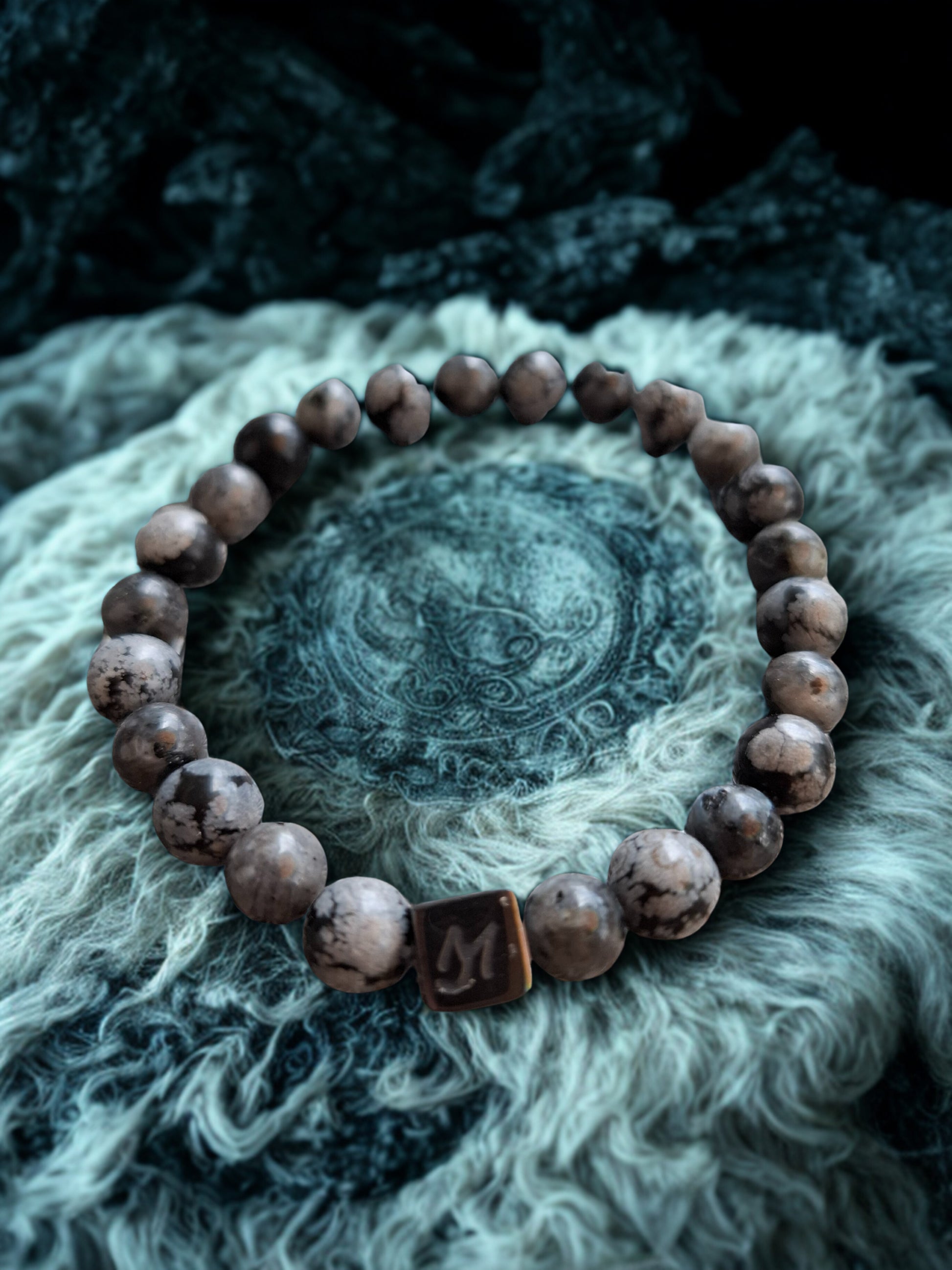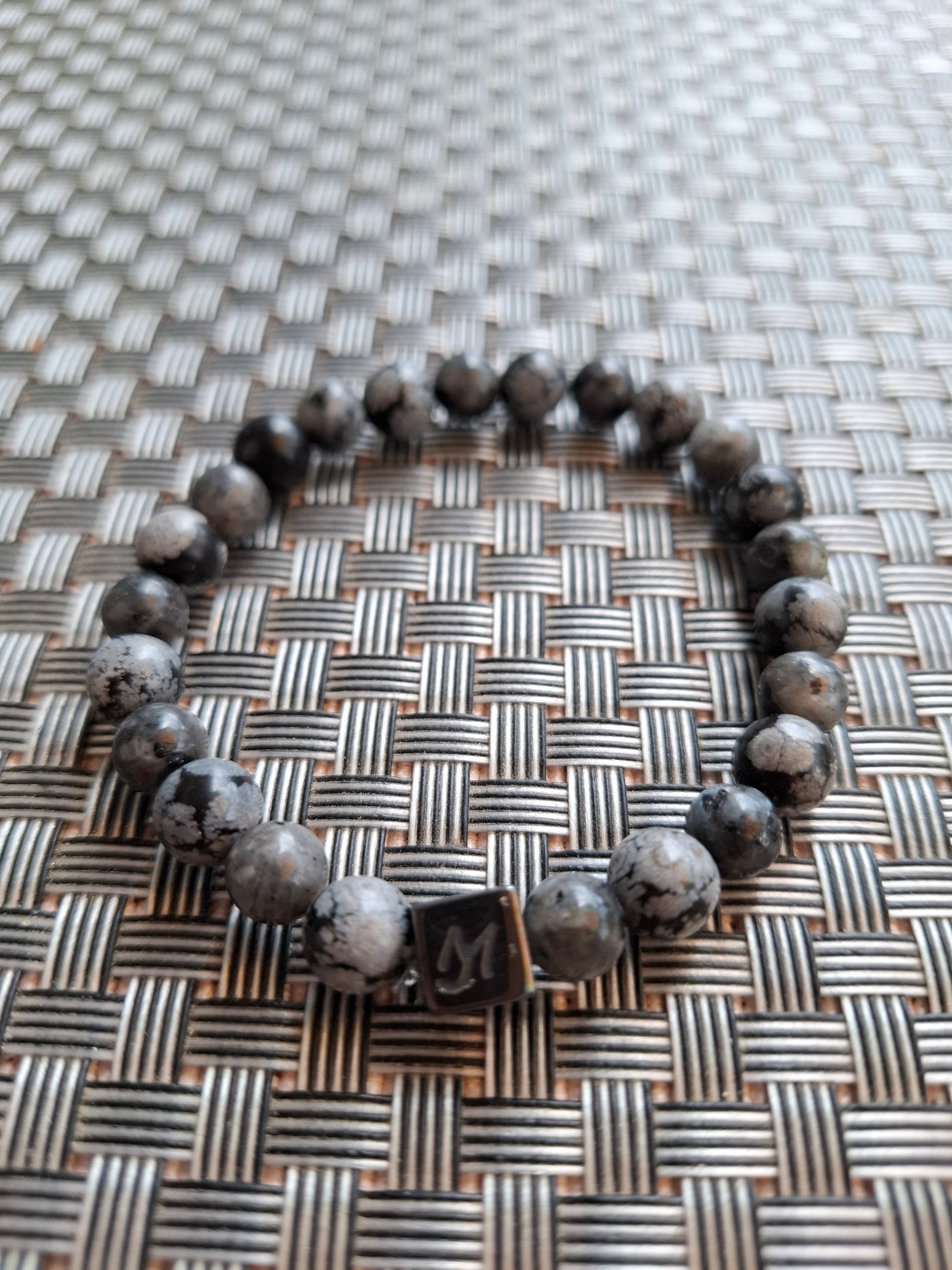 Bracelet en Larvikite & Obsidienne Flocon de Neige
